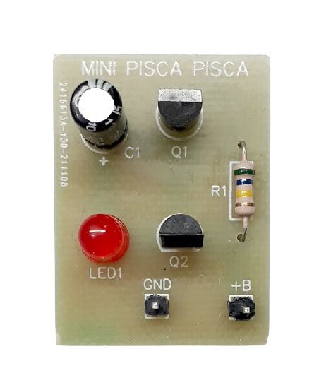 A velocidade das piscadas poderá ser modificada alterando os valores do resistor e do capacitor.