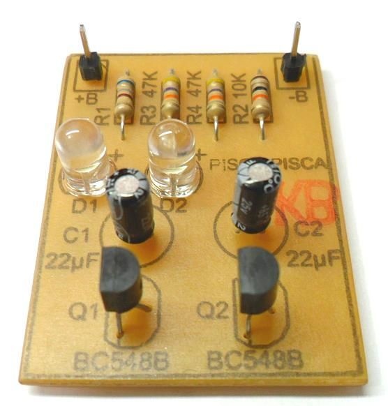 O circuito é composto por dois Leds de alto brilho (AB) branco, e poderá ser utilizado em diversas aplicações, para sinalização de advertência ou alerta, seja em uma situação real de advertência ou como complemento de um projeto eletrônico, também poderá ser utilizado em um projeto do tipo feira de ciências.